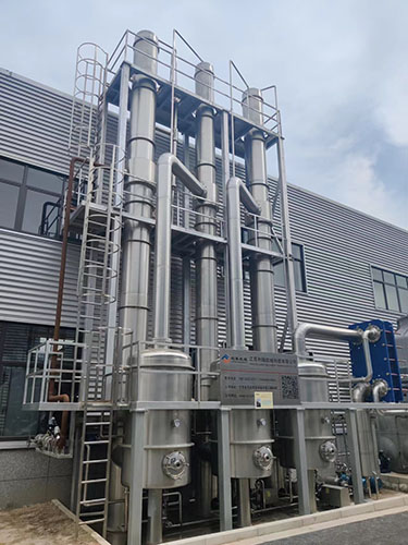 1) 降膜式蒸發器的料液是從蒸發器的頂部加入,在重力作用下沿管壁成膜狀下降,並在此過程中蒸發增濃,在其底部得到濃縮液。降膜式蒸發器可以蒸發濃度較高、粘度較大物料。